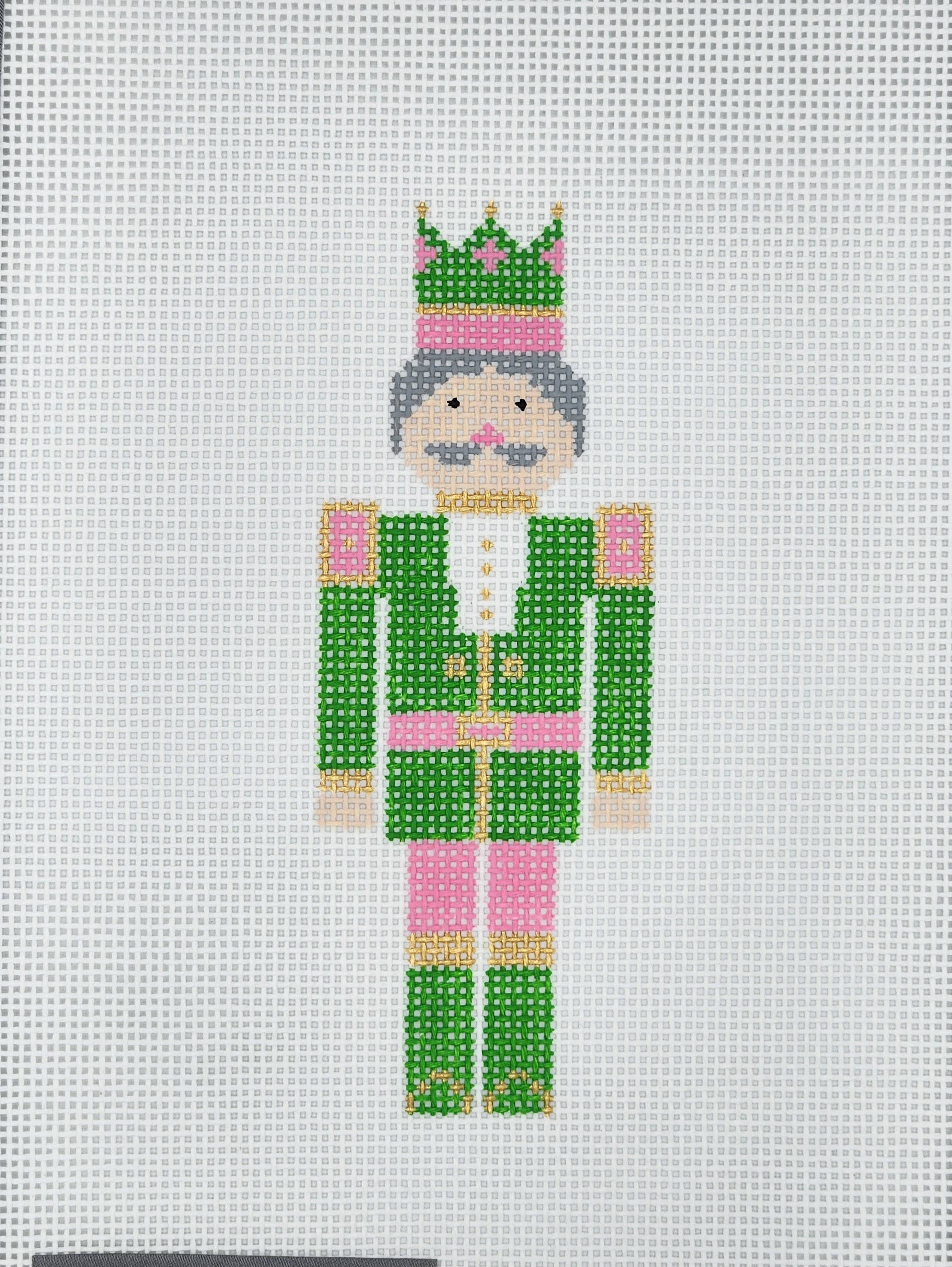 All canvases are stitch painted and come with a tapestry needle. This canvas does not come stitched or with fibers. Please allow 3-5 business days for in-stock canvases to ship.